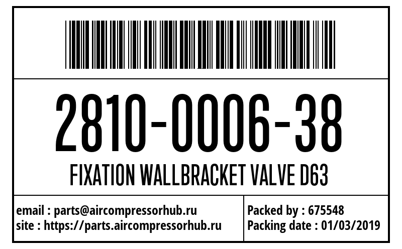 Настенный держатель D63, 1 шт. FIXATION WALLBRACKET VALVE D63 2810000638