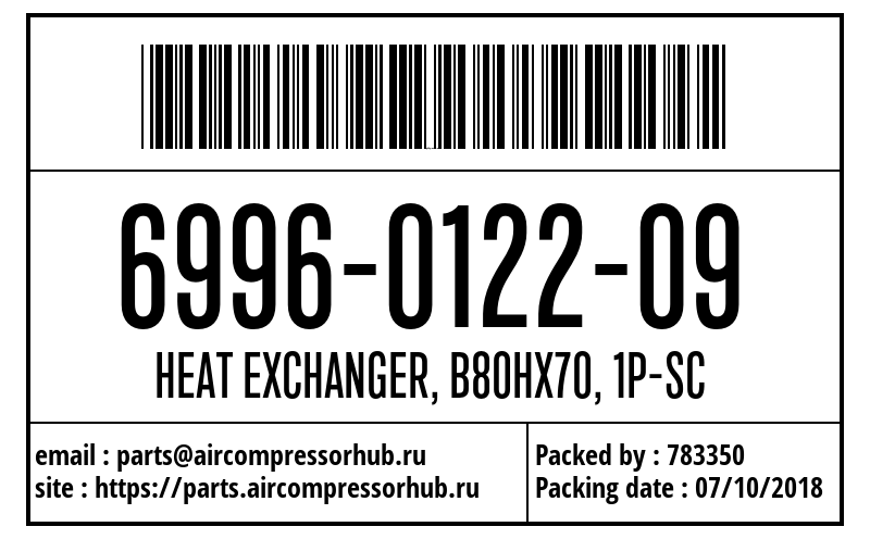 HEAT EXCHANGER, B80HX70, 1P-SC HEAT EXCHANGER, B80HX70, 1P-SC 6996012209