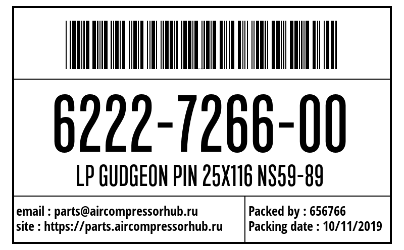 Штифт LP GUDGEON PIN 25X116 NS59-89 6222726600