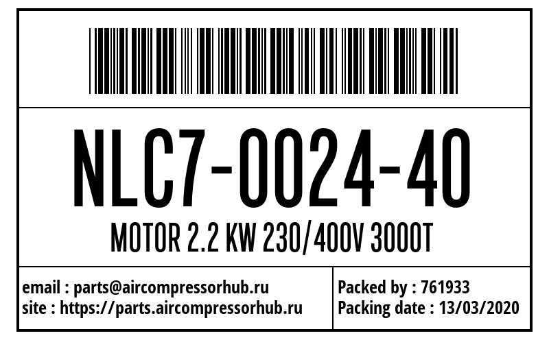 MOTOR 2.2 KW 230/400V 3000T MOTOR 2.2 KW 230/400V 3000T NLC7002440