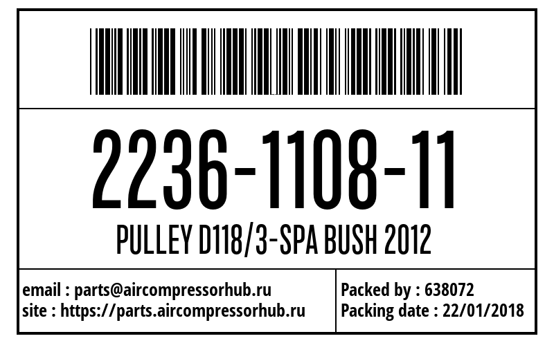 Шкив PULLEY D118/3-SPA BUSH 2012 2236110811