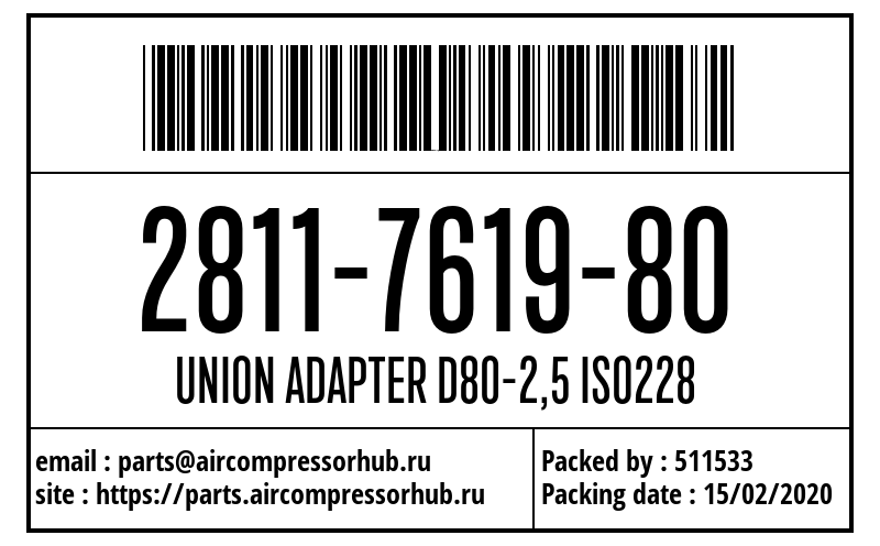 Адаптер D80 ISO 228 Female, 1 шт. UNION ADAPTER D80-2,5 ISO228 2811761980