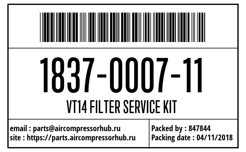 VT14 FILTER SERVICE KIT VT14 FILTER SERVICE KIT 1837000711